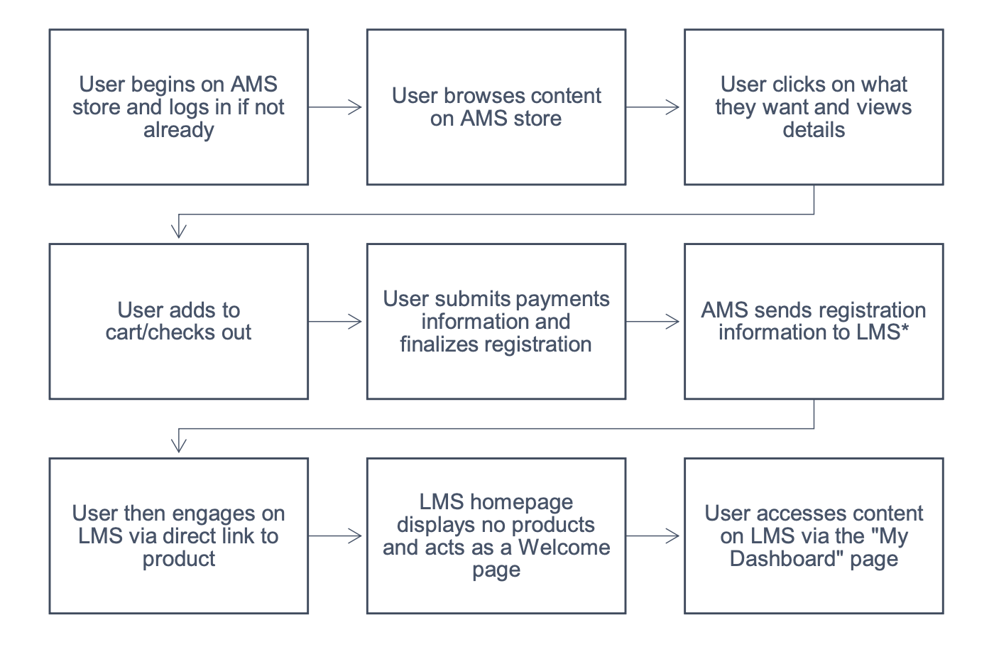 - The user will bounce between the LMS and the AMS store and back to the LMS for engagement.